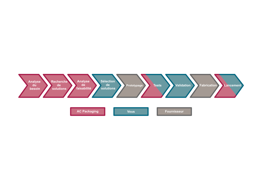 AC packaging, agence de conseil en développement d'emballage, vous accompagne de la naissance de votre besoin jusqu'à la mise en production de votre nouvel emballage.